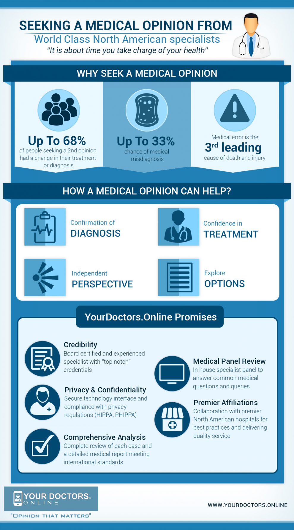 The infographic “Seeking a Medical Opinion From World Class North American Specialists” complied by Yourdoctors.Online is created with an aim to guide the users on why to seek a second opinion and how they can benefit themselves and their loved ones with this option.